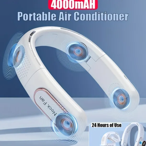 Foldable Neck Fan with 4000mAh Battery – USB Rechargeable Bladeless Cooling Fan with Quiet Operation for Outdoor Use