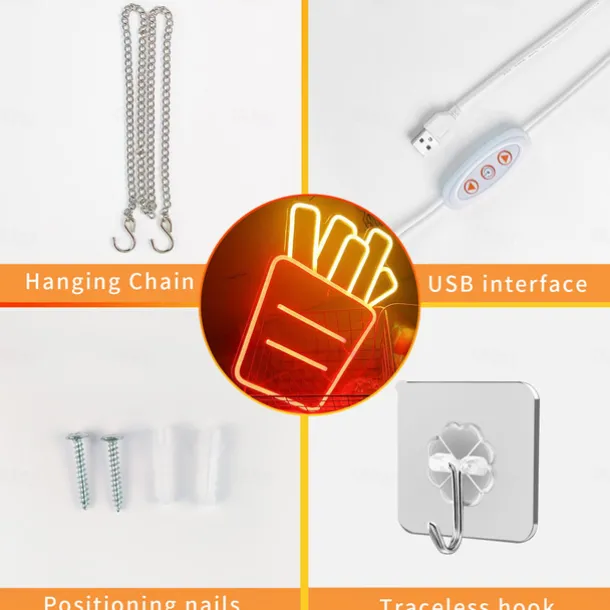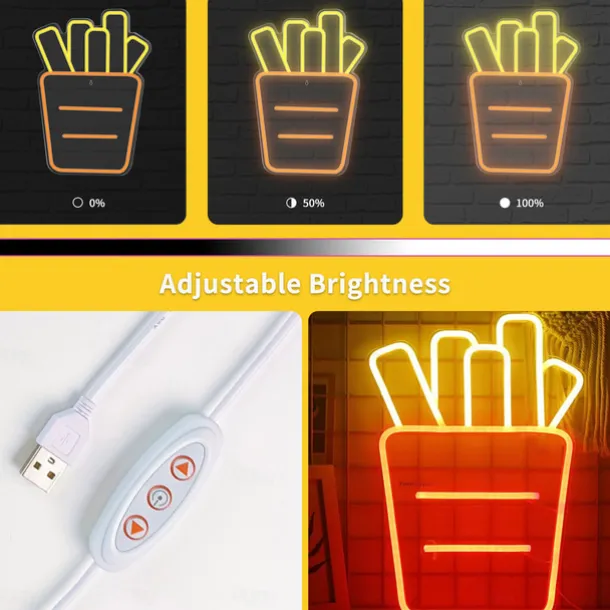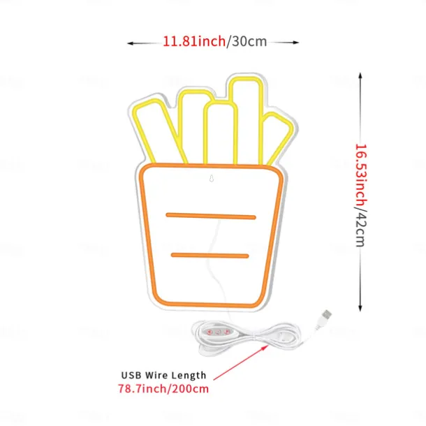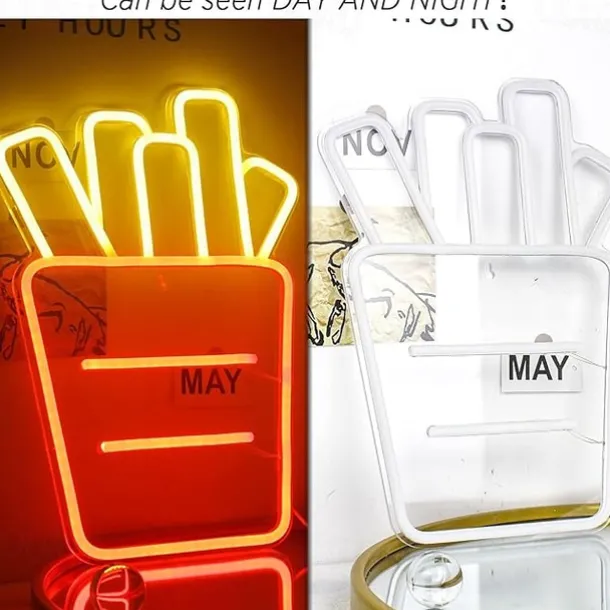 French Fries Neon Sign LED Light, Acrylic Neon Wall Art Decor 16.5×12″ for Kitchen, Restaurant, Party & Food Cart