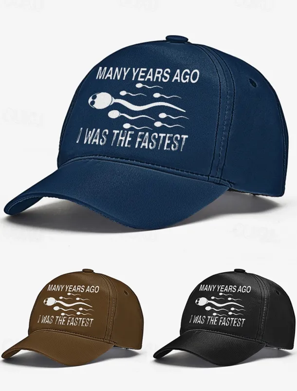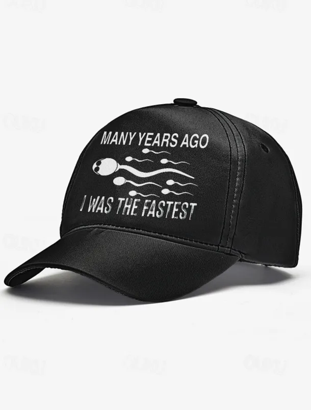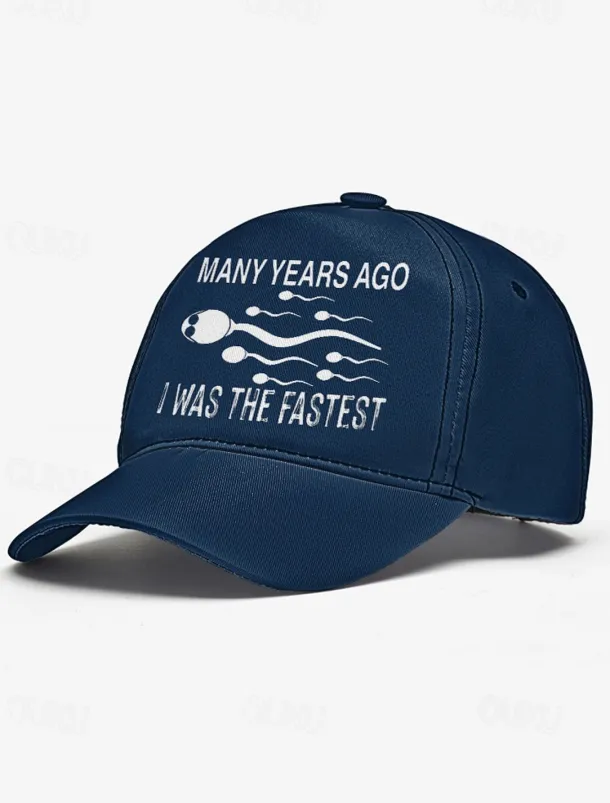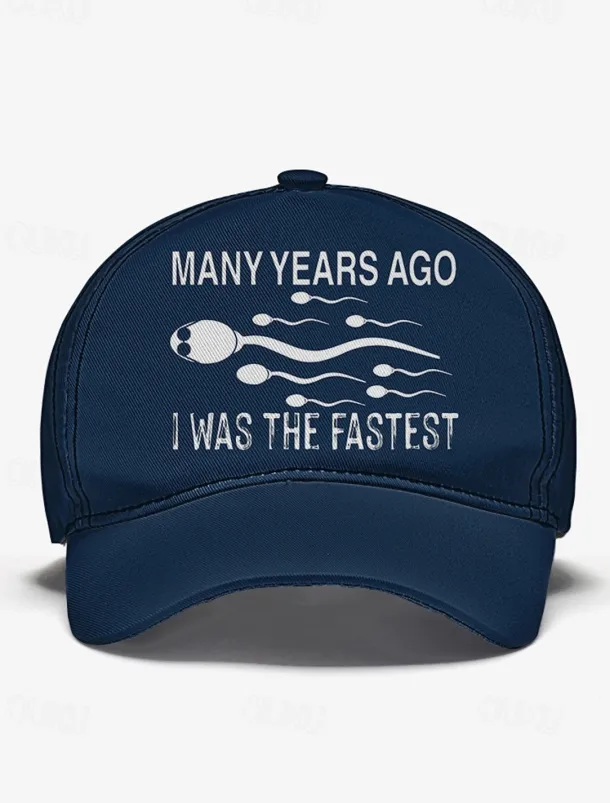 Funny Printed Baseball Cap with ‘Many Years Ago I Was the Fastest’ Quote, Adjustable Dad Hat for Men and Women, Perfect for Casual Wear, Gag Gifts, and Parties