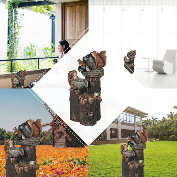 1. Enhance your garden with a whimsical water feature featuring cute squirrels or geese.