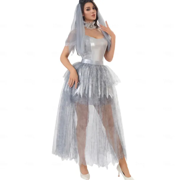 Ghostly Bride Devil Halloween Dress Outfits Cosplay Adults’ Women’s Halloween Performance Party Stage Easy Halloween Costumes Dress Up