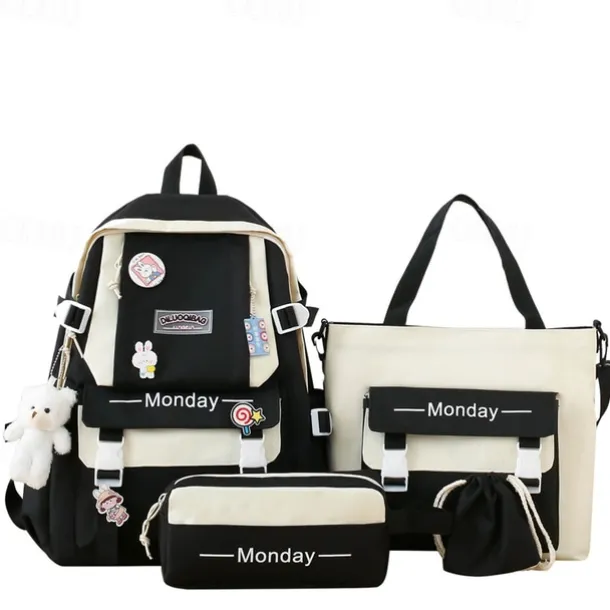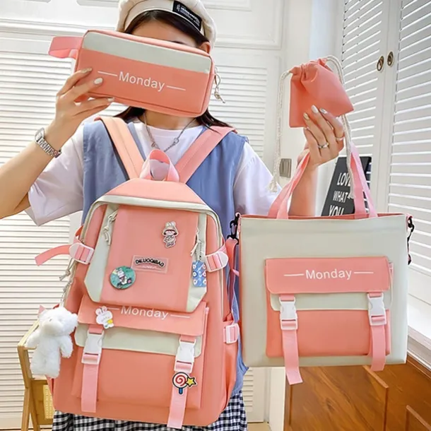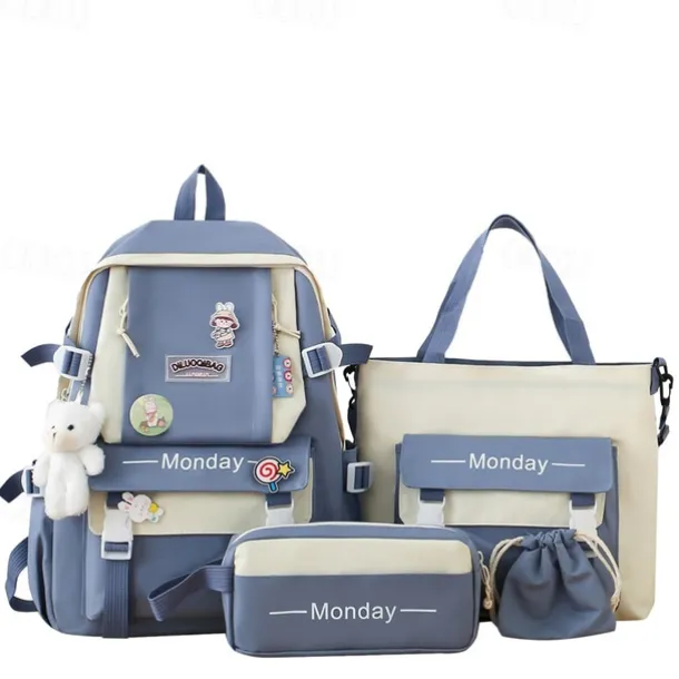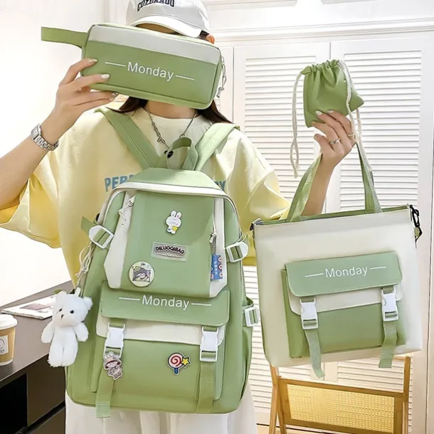 Girls 5-in-1 Green Backpack Set with Cute Accessories – Lightweight School Bag with Tote, Pencil Case and Drawstring Pouch for Teen Students and Daily Use