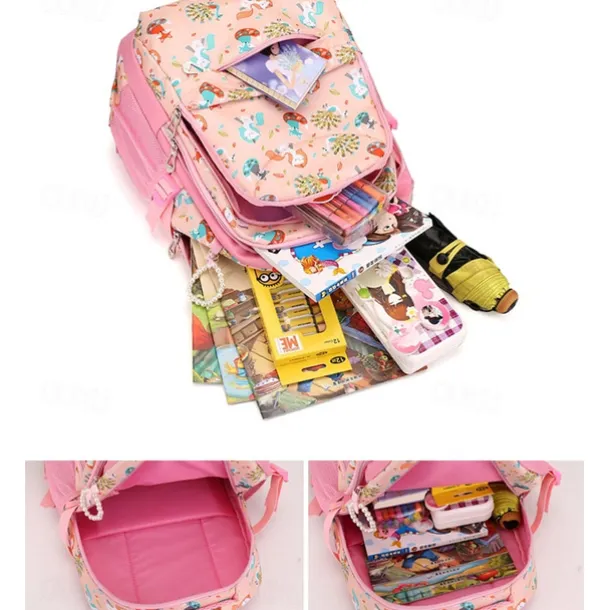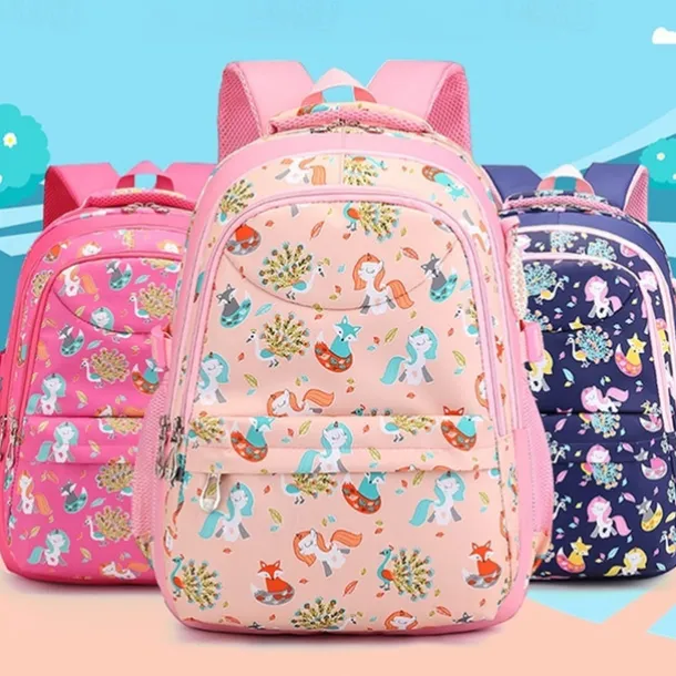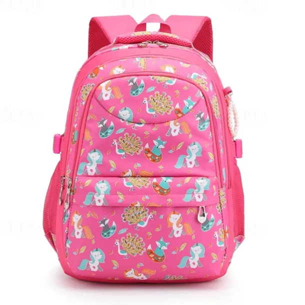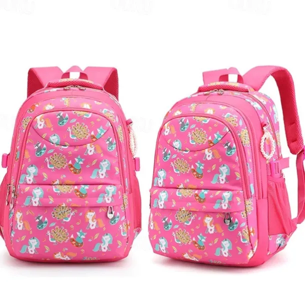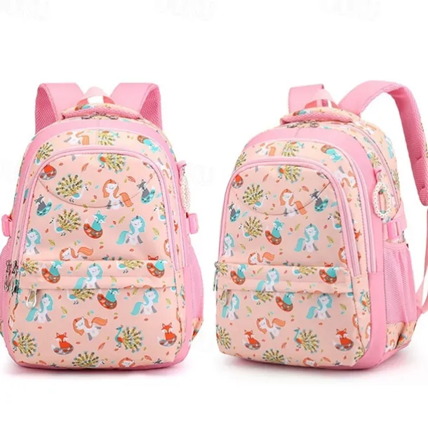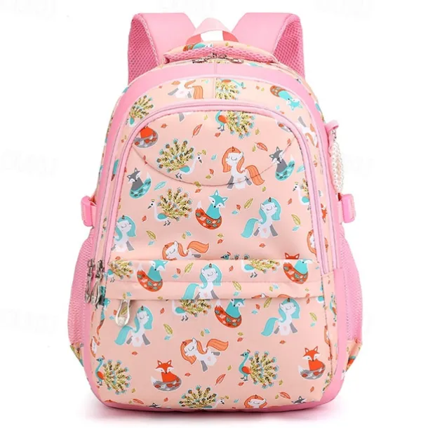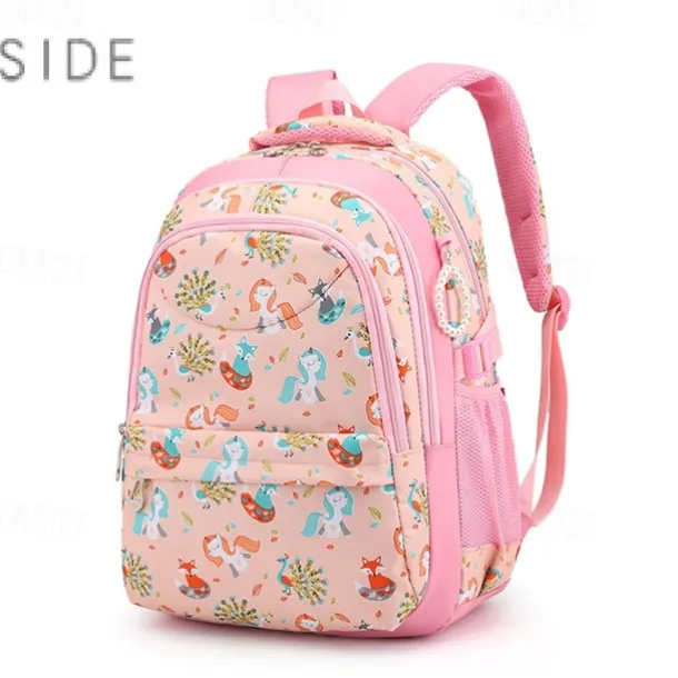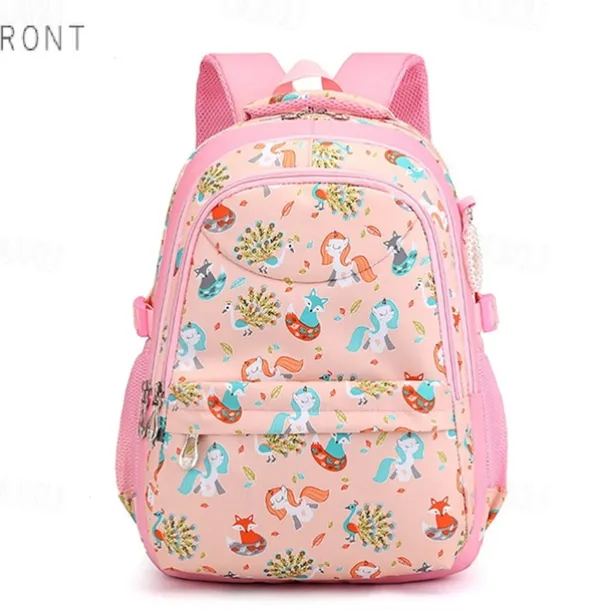 Girls’ Pink Cartoon Backpack – Waterproof School Bag with Unicorn and Animal Print for Kindergarten and Elementary Kids