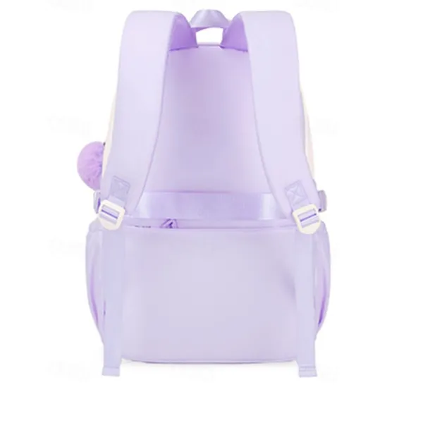 Girls’ Red and White School Backpack – Cute Large Capacity Bookbag with Star Patches and Pom-Pom Charm for Teens