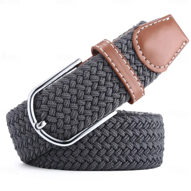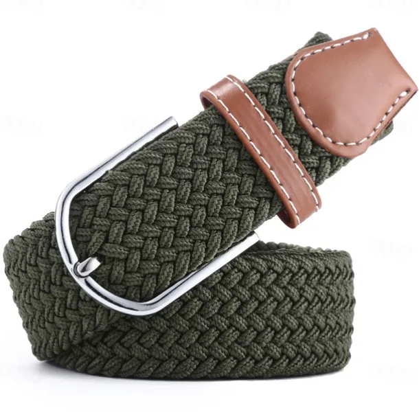 Golf Belt Unisex Stylish and Versatile Leather Belt with Buckle, Fashionable Woven Design, Elasticity, and Korean-style Casual Canvas for Men and Women