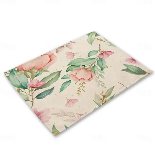 Material: Cotton / Linen Blend, Style: Flower, Features: Waterproof, Heat Resistant, Dust-Proof, Oil Repellent, Shape: Rectangular, Pattern: Floral, Item Type: Placemats, Listing Date: 07/10/2023,