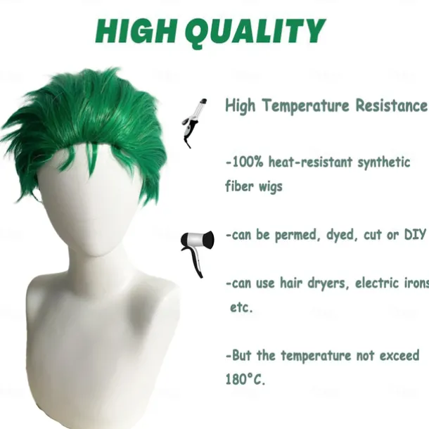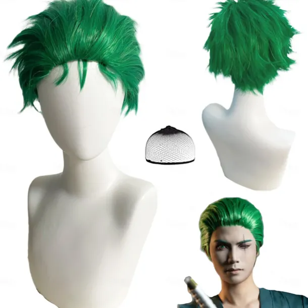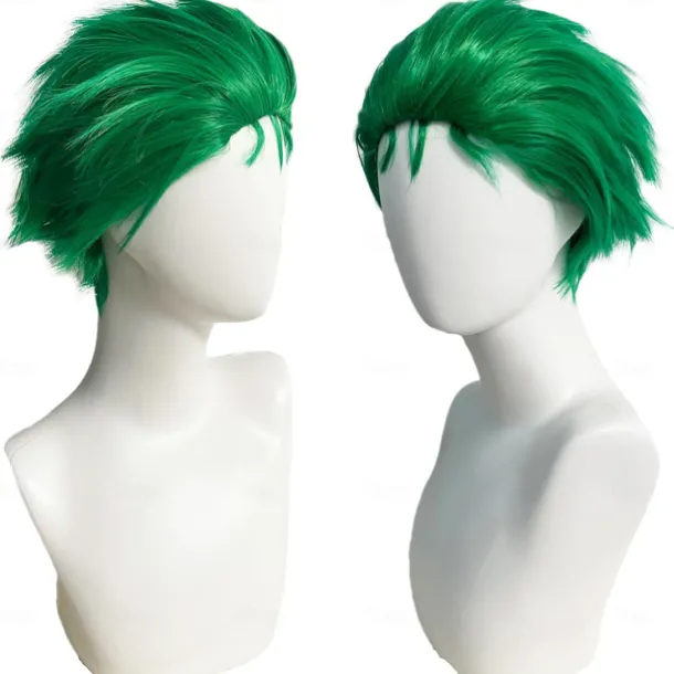 Green Spiky Short Wig Layered Wig for Men for Anime Cospaly Costume Staight Synthetic Wig for Carnival Christmas Event with Wig Cap St.Patrick’s Day Wigs