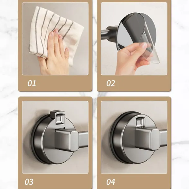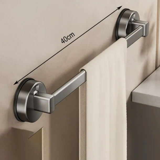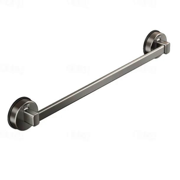 Gunmetal Carbon Steel Towel Rack, Suction Cup Wall-Mounted, No-Drill Bathroom Storage Shelf with Single Bar for Towels and Bath Accessories