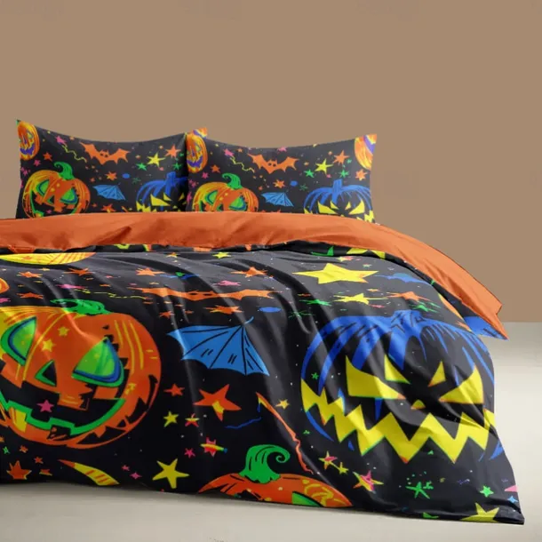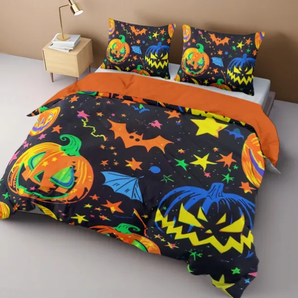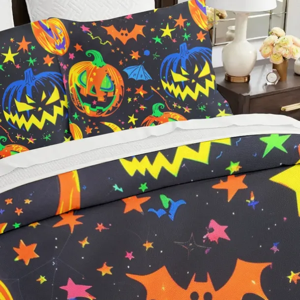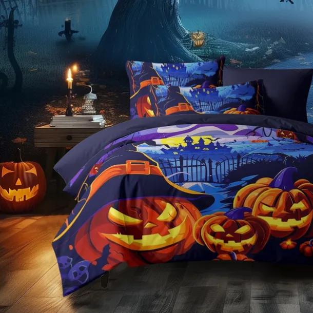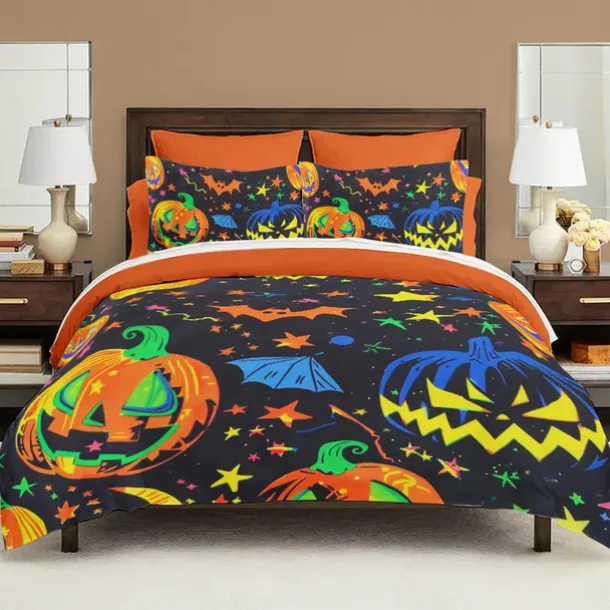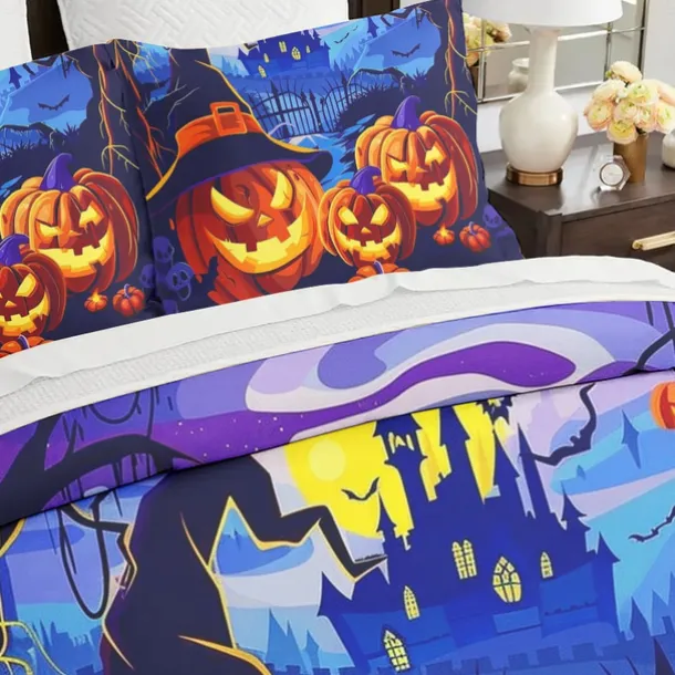 Halloween Collection Duvet Cover Set 3 Piece Set Jack O Lantern Pumpkin Super Soft Skin-friendly Long-lasting