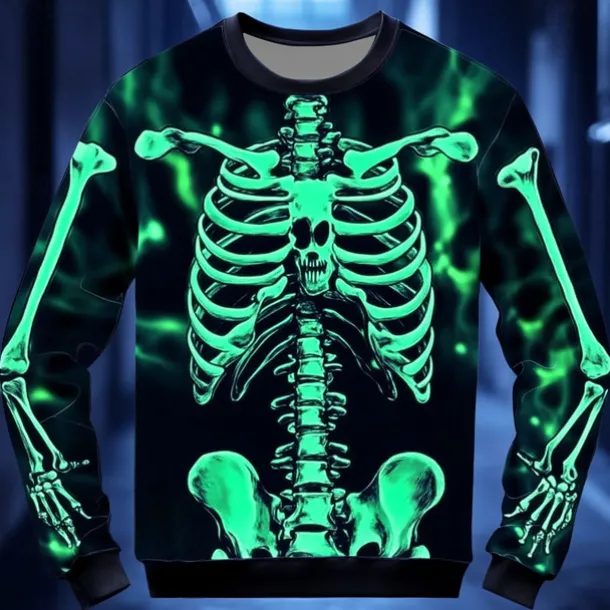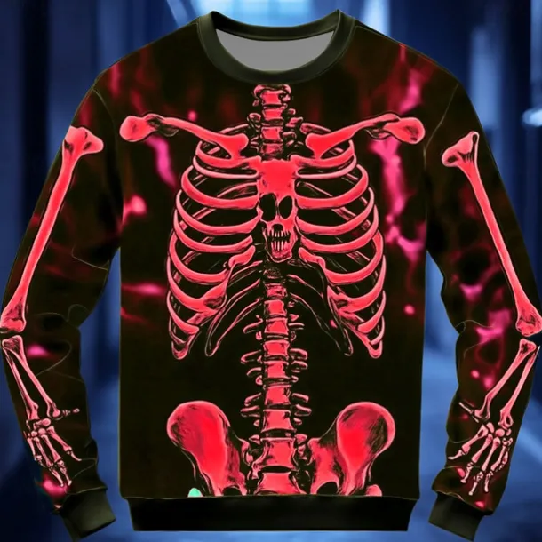 Halloween Day of the Dead Skull Men’s 3D Print Skeleton Sweatshirt Punk Party Long Sleeve Crew Neck Vacation Light Green Red Crewneck 3D All Seasons Designer