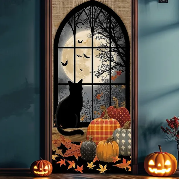 Halloween Door Cover – Flying Witch Silhouette with BOO Sign, Haunted House Entrance Banner, Scary Outdoor & Indoor Decoration for 2025 Halloween Bedroom, Living Room, Bathroom