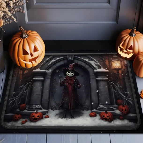 Halloween Doormat Jack Skeleton Pumpkin Kitchen Mat Floor Mat Non-Slip Area Rug Oil Proof Rug Indoor Outdoor Mat Bedroom Decor Bathroom Mat Entrance Rug
