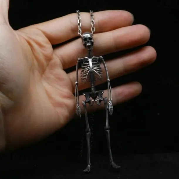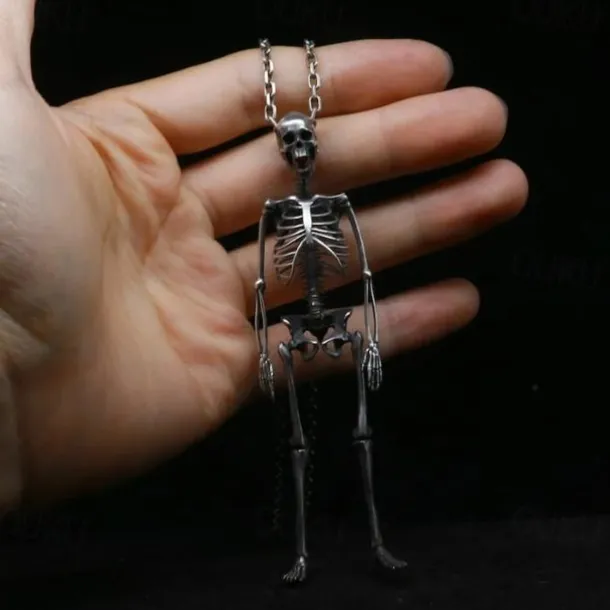 Halloween Gift 14CM/5.51inch, Handmade Sterling Silver Full Body Skeleton Pendant -HALLOWEEN GIFT