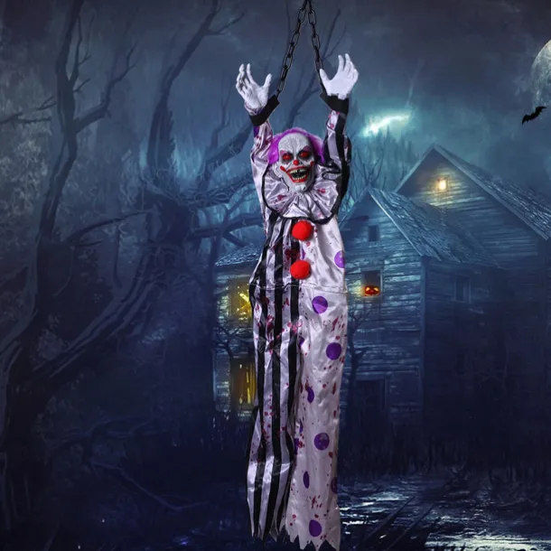 Halloween Hanging Clowns Decorations Talking Clown Ghost Decoration Flash Light up Red Eyes Sound Activated Function for Halloween Outdoor Indoor Haunted House Yard Decor