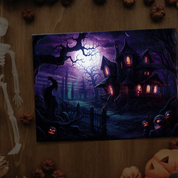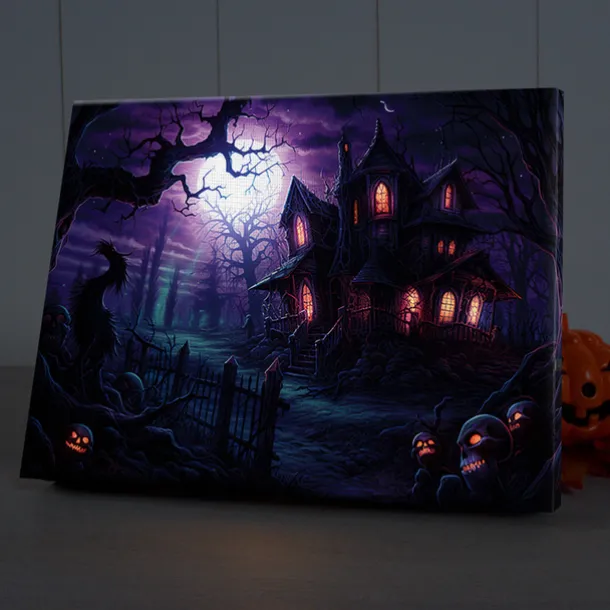Halloween Haunted Mansion with Moonlight LED Canvas Wall Art – Battery Operated Lighted Wall Decor for 2025 Halloween home decoration light livingroom and bedroom