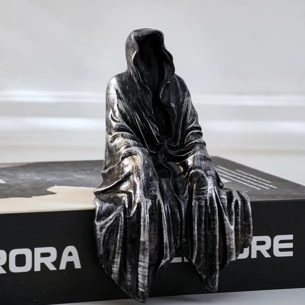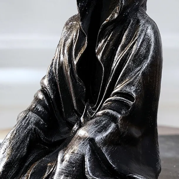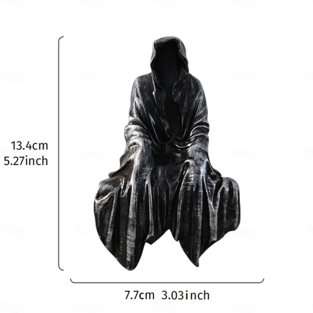 Halloween Horror Art Design Resin Black Robe Dead God Sitting Statue Gothic Dark Knight Terror Dead God Decoration Suitable for Halloween Home Decoration Bookcase Desktop Decoration Gifts 1PC