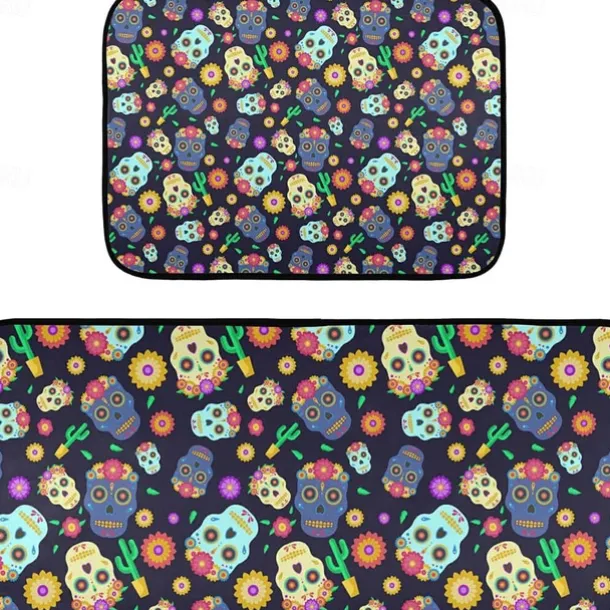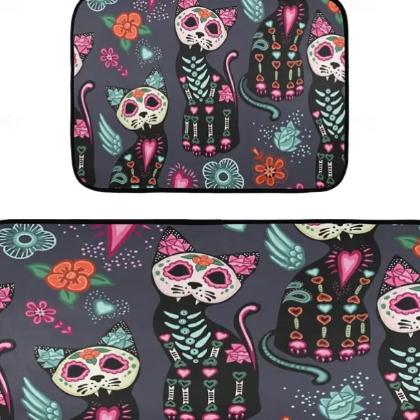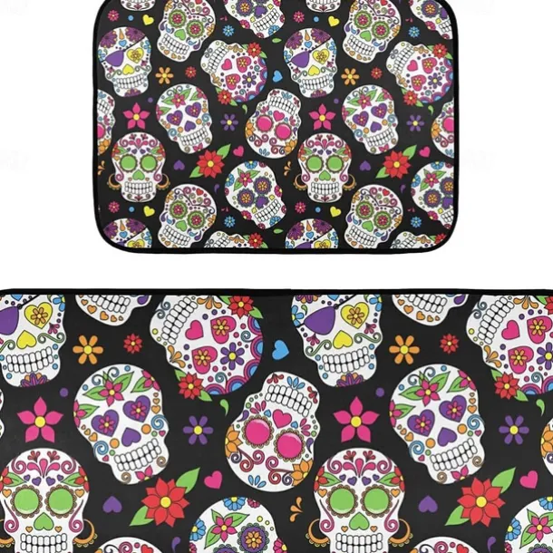 Halloween Kitchen Mats, 2PCS Kitchen Rugs, Cushioned Anti Fatigue Kitchen Mats for Floor, Non-Slip Standing Desk Mat, Waterproof Kitchen Rug Set for Kitchen, Floor, Office