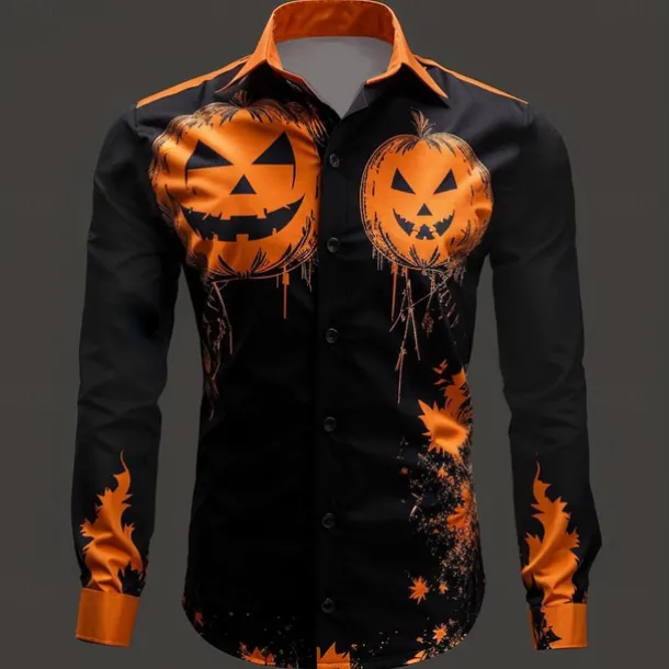 Halloween Men’s Pumpkin Grimace Halloween Costumes Button Up Shirt Long Sleeve Casual Party Evening Wear Fall Winter Spring & Summer Turndown Shirt Collar Button Up 3D Print Orange