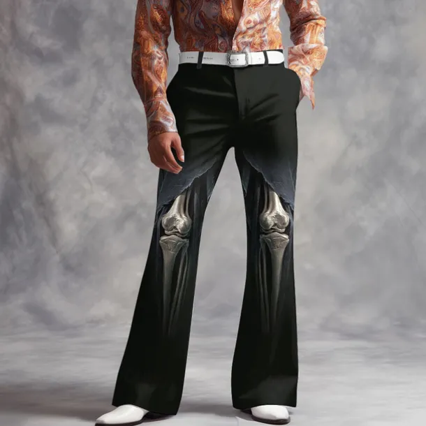 Halloween Men’s Skeleton Halloween Costumes Disco Pants 60s 70s Bell Bottoms Mid Waist Dark Gothic Style Outdoor Holiday Side Pockets Flared Leg Pants Trousers Spring Fall 3D Print Black 1 Black
