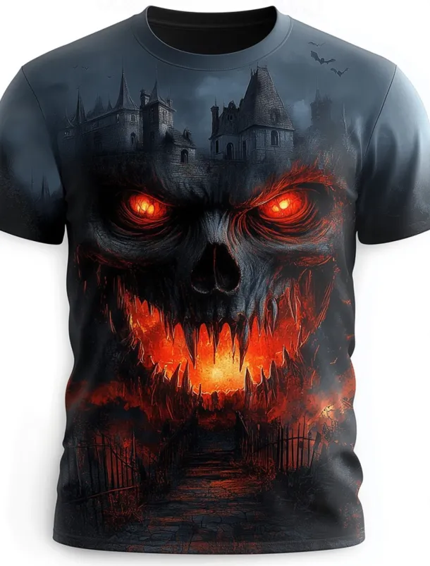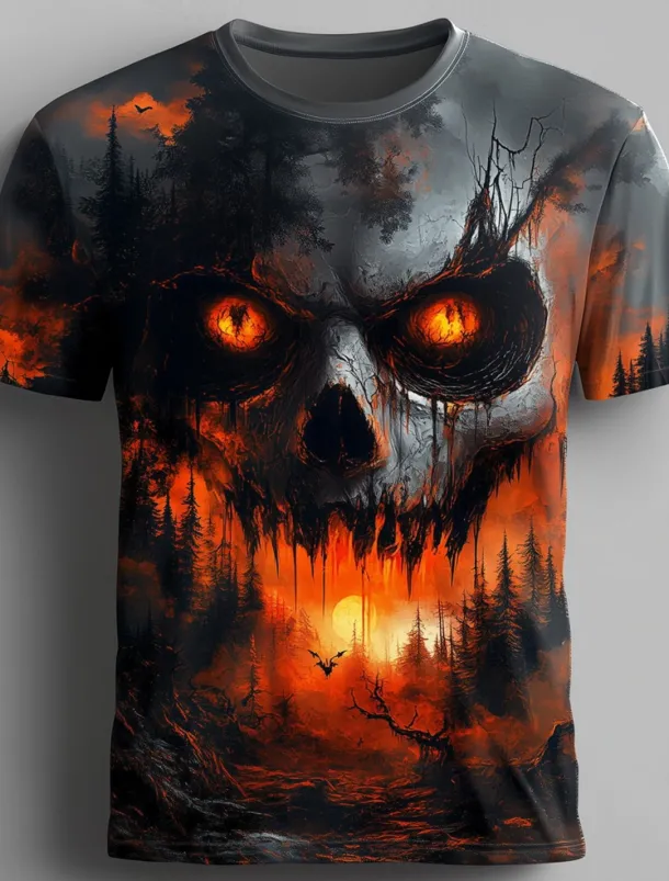 Halloween Men’s Skull 3D Flame T Shirt Short Sleeve T shirt 3D Print Crew Neck Shirt Exaggerated Designer Horror Party Street Casual White Red Blue Summer Spring All Seasons Clothing Apparel S M L XL
