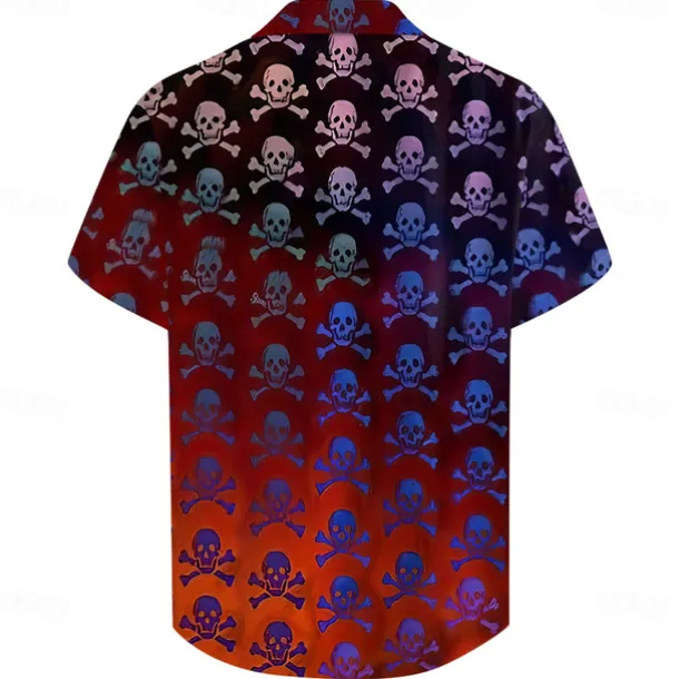 Halloween Men’s Skull Halloween Costumes Shirt Button Up Shirt Short Sleeve Casual Vacation Daily Summer Turndown Collared Shirts Button Up 3D Print Red