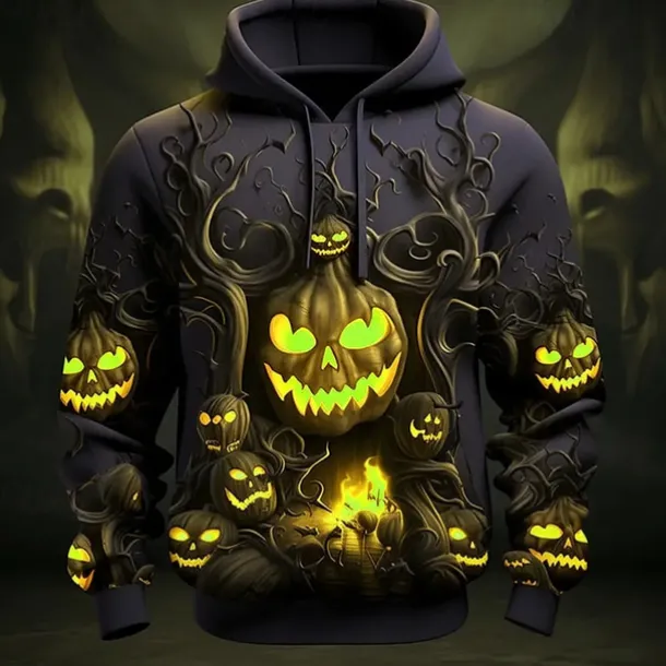 Halloween Pumpkin Hoodie Pullover Anime 3D Front Pocket Graphic For Couple’s Men’s Women’s Adults’ Halloween Carnival Masquerade 3D Print Party Casual Daily