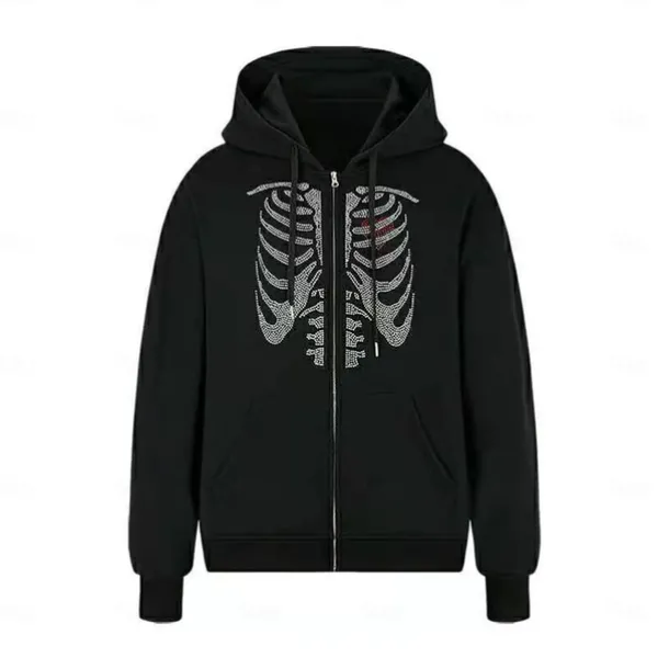 Halloween Skeleton Skull Hoodie Outerwear Zip-Up Hoodie Kings Day For Men’s Women’s Adults’ Halloween Carnival Hot Stamping Party Casual Daily