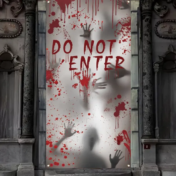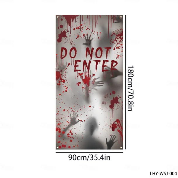 Halloween Window Door Cover, Fabric Made Halloween Window Door Decorations, Scary Bloody Handprint & Shadowy Figure for Haunted House Halloween Party Decorations