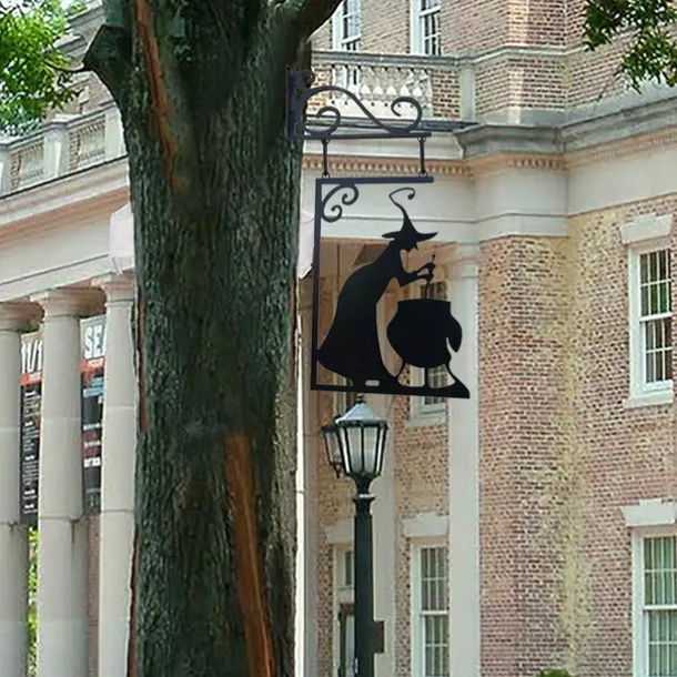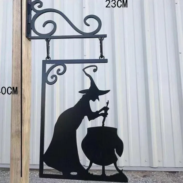 Halloween Witch Cauldron Silhouette Wall Decor – Outdoor Metal Witches Cauldron Wall Hanging Ornament, Halloween Scary Hanging Metal Wall Sign for Garden Party Decor