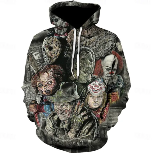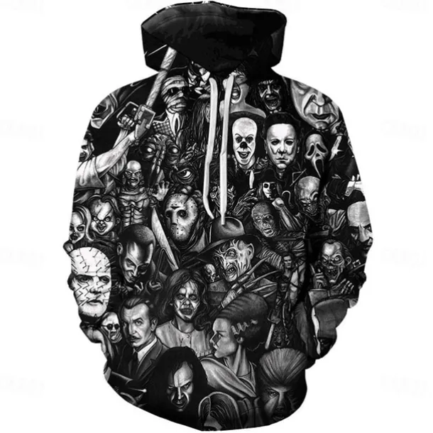 Halloween Zombie Hoodie Print 3D Front Pocket Graphic For Couple’s Men’s Women’s Adults’ Halloween Carnival Masquerade 3D Print Vacation Halloween