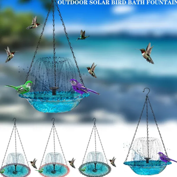 Hanging Bird Bath with Solar Fountain Pump Bird Bath for Outside Solar Bird Bath Multi-Functional Basin Hummingbird Feeder for Bird for Backyard, Patio Garden Yard Decoration
