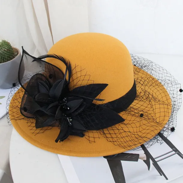 Hats Artificial feather Poly / Cotton Blend Bowler / Cloche Hat Bucket Hat Fedora Hat Casual Holiday Kentucky Derby Cocktail Royal Astcot Vintage Style Elegant With Feather Appliques Headpiece