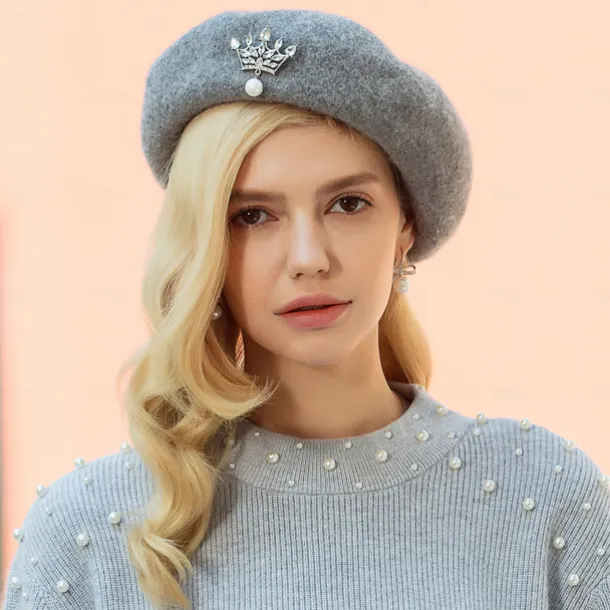 Hats Wool Beret Hat Floppy Hat Wedding Casual Elegant Wedding With Crystals Pure Color Headpiece Headwear
