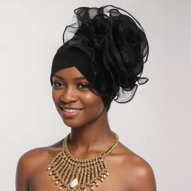 Headwear Net Floppy Hat Turbans Formal Wedding With Flower Tulle Headpiece Headwear