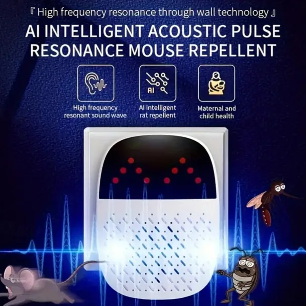 High-Power Acoustic Pulse Ultrasonic Mouse & Mosquito Repeller – Indoor Insect Deterrent Device for Home Protection