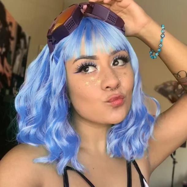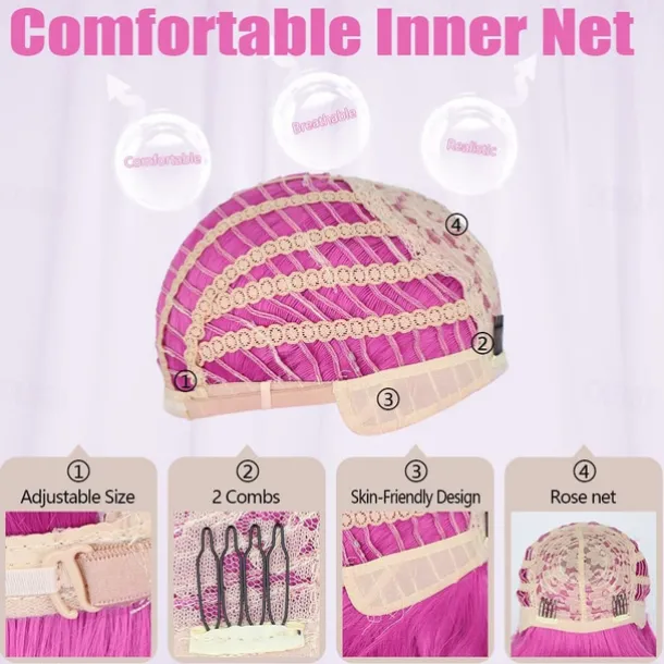 Hot Pink Wig with Bangs Short Bob Wavy Curly Wig Shoulder Length Hot Pink Wigs for Women Synthetic Hair Colorful Wig for Halloween Costume Cosplay 14 Inch