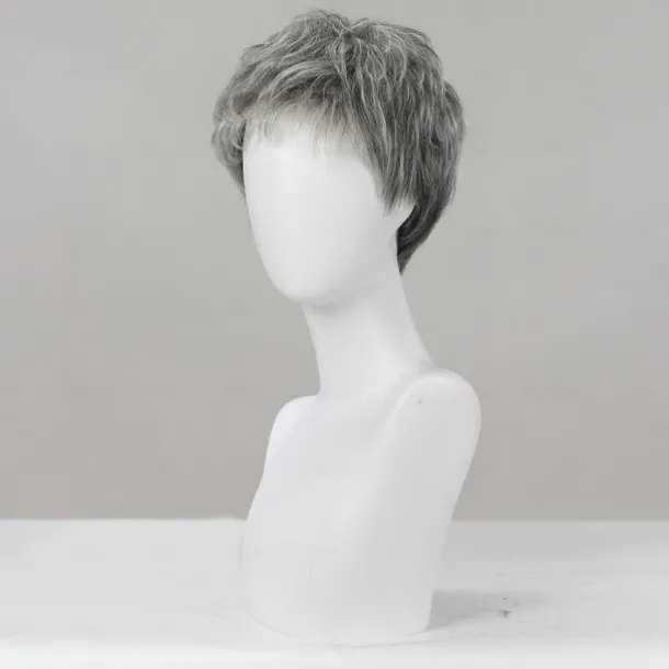Human Hair Blend Wig Short Loose Curl Water Wave Pixie Cut Side Part Layered Haircut Asymmetrical Dark Gray Cosplay Curler & straightener Natural Hairline Capless Burmese Hair Chinese Hair Men’s All