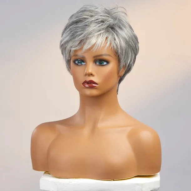 Human Hair Wig Short Straight With Bangs Dark Gray Soft Party Women Capless Brazilian Hair Women’s Grey 8 inch Party / Evening Daily Daily Wear