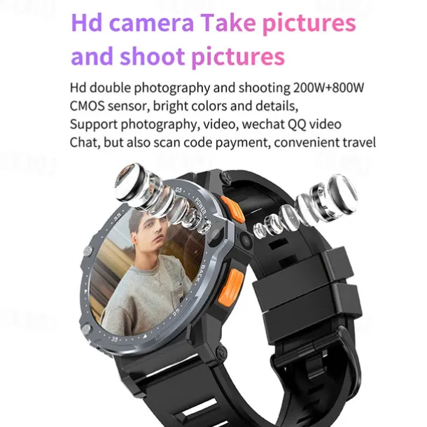 iMosi PG999 Smart Watch 1.54 inch 4G LTE Cellular Smartwatch Phone 4G Pedometer Call Reminder Heart Rate Monitor Compatible with Null Men GPS Long Standby Hands-Free Calls IP 67 43mm Watch Case