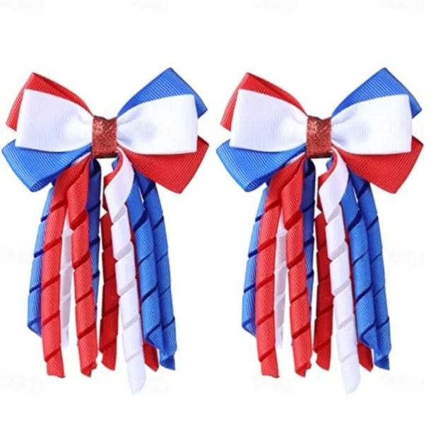 Independence Day Hair Bow Clips 3 Inch Red White Blue Curly Ribbon Hair Clips Handmade School Kids Girls Hair Accessories for 4th of July