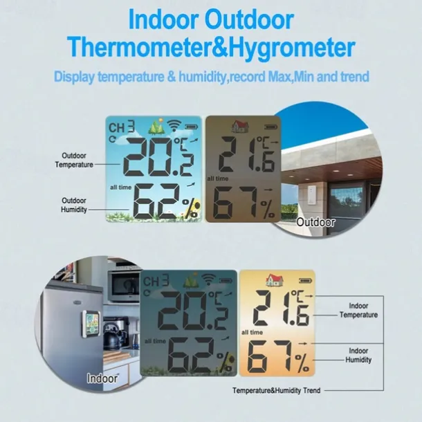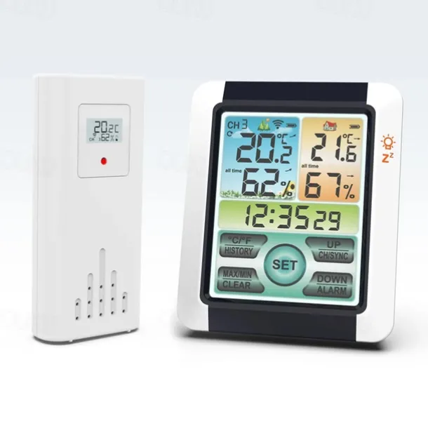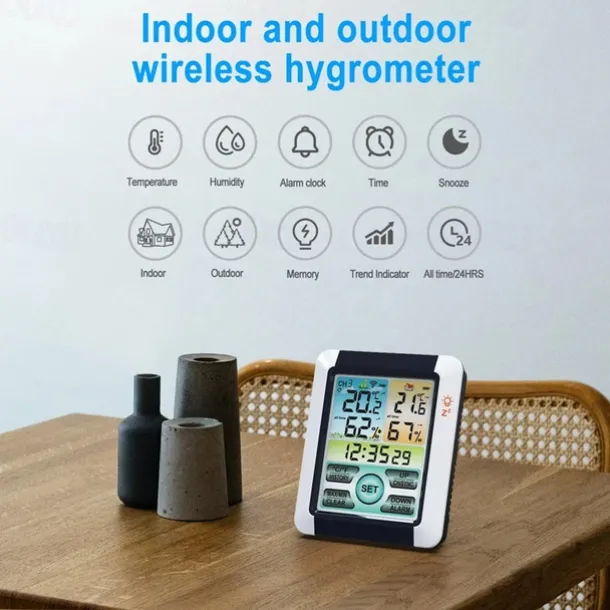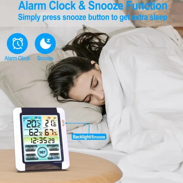 Indoor Outdoor Thermometer Wireless Digital Hygrometer Thermostat Temperature & Humidity Monitor with Touchscreen LCD Backlight