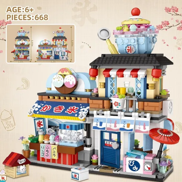 Japanese Street View Ice Drink Shop Mini Building Blocks Building Toys Model Set for Girls Boys 6-12 Years Old 668 PCS Simulation Architecture Construction Toy Gift Idea for Kids Adults