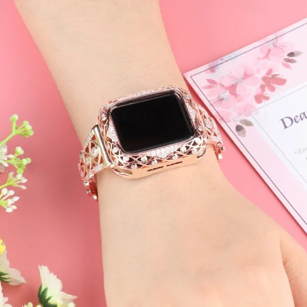 Jewelry Bracelet Compatible with Apple Watch band 38mm 40mm 41mm 42mm 44mm 45mm 49mm Bling Diamond Adjustable Breathable Stainless Steel Rhinestone Strap Replacement Wristband for iwatch Ultra 2