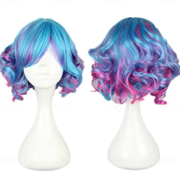 Kadiya Cosplay Wig Short Curly Colorful Lolita Zipper Cosplay Party Hair Halloween Wigs