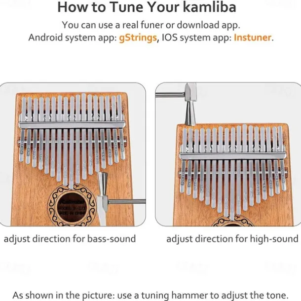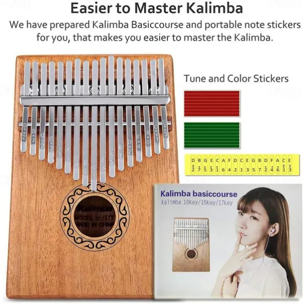 Kalimba Thumb Piano Portable 17 Keys Mbira Finger Piano with Tune Hammer and Study Instruction Musical Instruments Birthday Gift for Kid Adult Beginners Professional