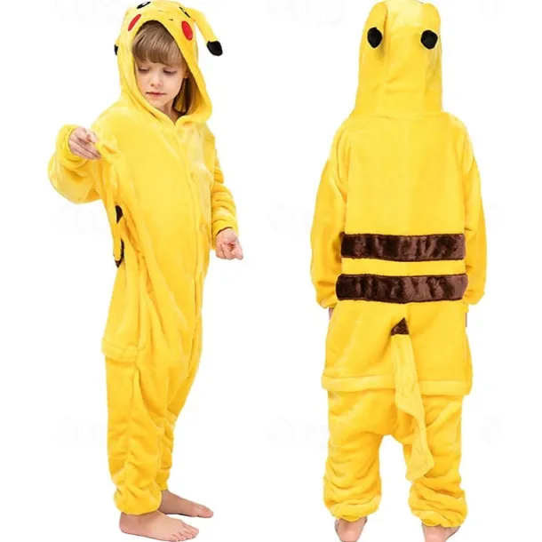 Kid’s Adults’ Kigurumi Pajamas Pika Pika Patchwork Onesie Pajamas Funny Costume Flannelette Flannel Toison Cosplay Costume Warm Cute Cozy Homewear For Halloween Carnival