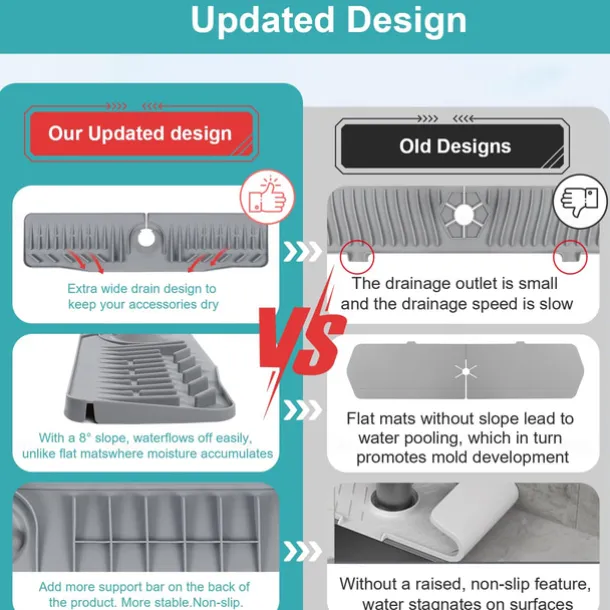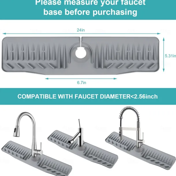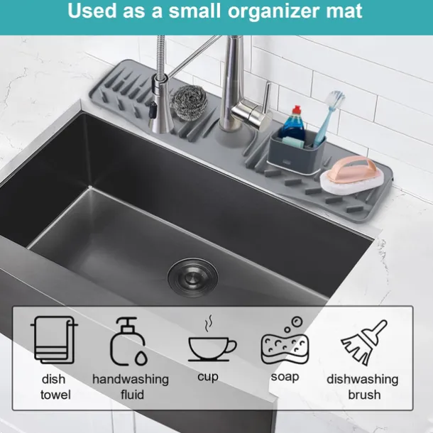 Kitchen Sink Splash Guard, 24in Faucet Mat Splash Catcher, Handle Drip Catcher Tray, Multipurpose for Kitchen Dish Drying Mats Sponge Holder and Bathroom Countertop Protect-Grey