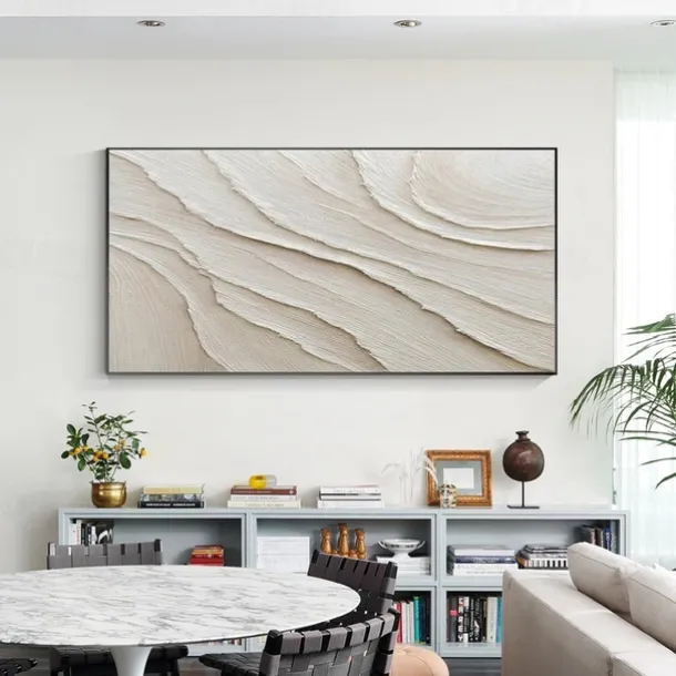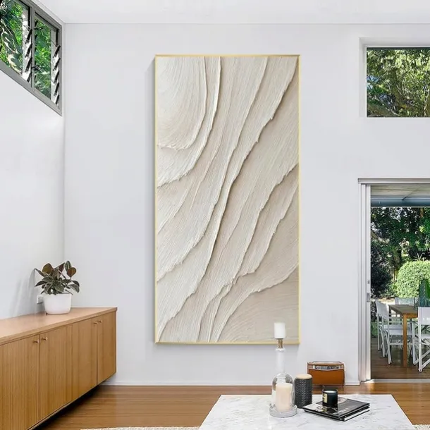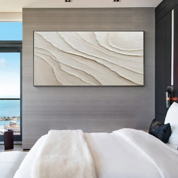 Large white oil painting handmade 3D White Canvas Oil Painting handmade Abstract painting handmade Wall Art pattle Knife wave Painting Light Luxury oil painting for Living Room bedroom wall Decor