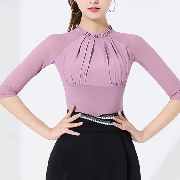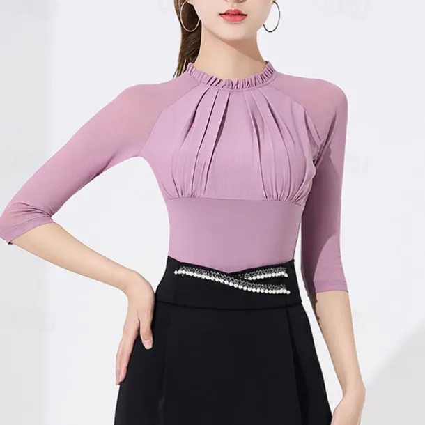 Latin Dance Ballroom Dance Leotard / Onesie Pure Color Splicing Tulle Women’s Performance Training Half Sleeve High Polyester