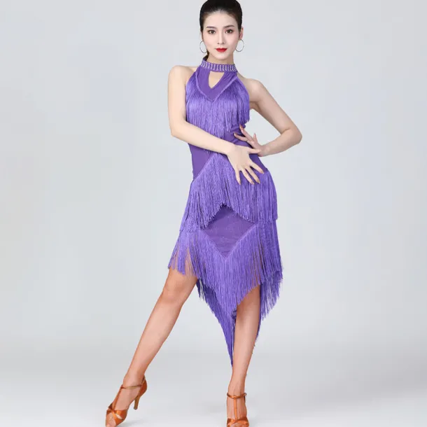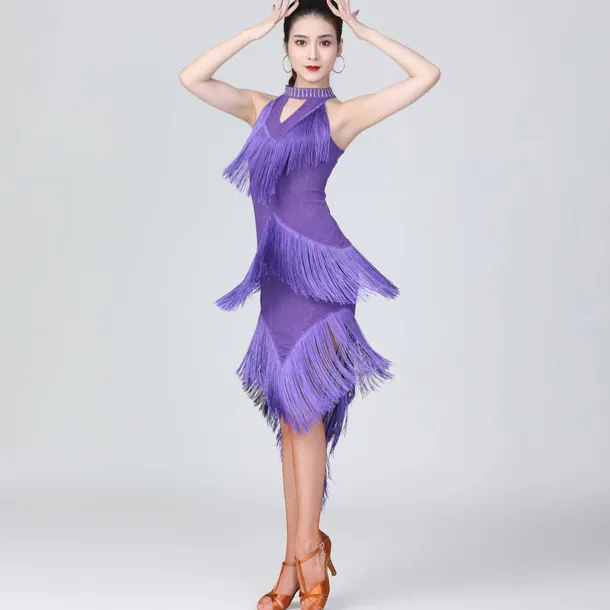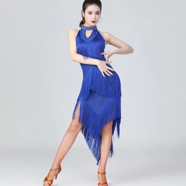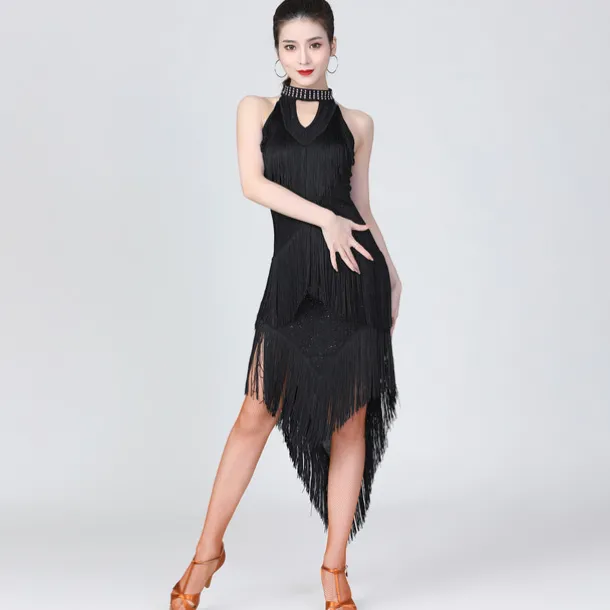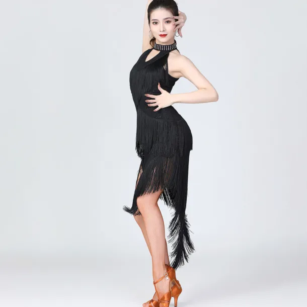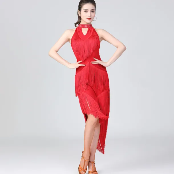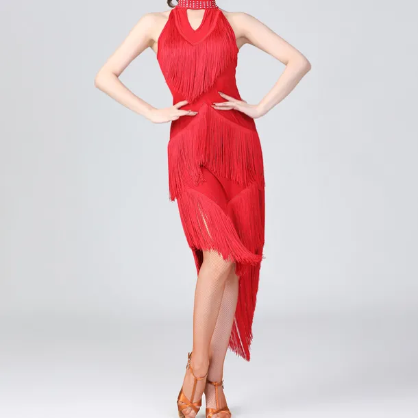 Latin Dance Dress Fringed Tassel Ruching Solid Women’s Training Performance Sleeveless High Polyester/Dancing Party Dress